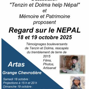 Les associations « Tenzin et Dolma help Népal » et « Mémoire et Patrimoine » proposent Regard sur le Népal, samedi 18 et dimanche 19 octobre à la Grange Chevrotière. Le public pourra rencontrer et échanger avec Tenzin et Dolma, rescapés du tremblement de terre de 2015. Programme : Samedi 18 octobre : projections à 15 […] ...